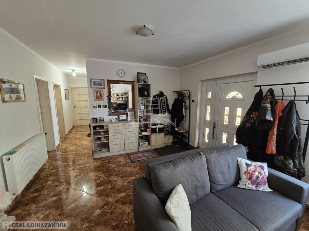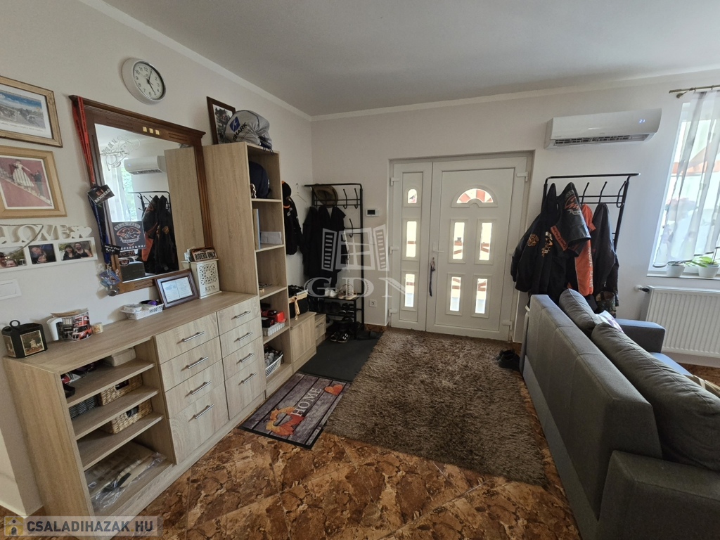 Az új építésű, kétszintes családi ház 2018-ban került újjáépítésre, korszerű blokk téglás szerkezettel, Leier és Porotherm téglákból. Az ingatlan több mint 110 m²-es, teljesen kiépített alsó szinttel rendelkezik, amely azonnal költözhető, míg a több mint 40 m²-es tetőtér beépíthető, így kiváló lehetőséget kínál egy különálló lakrész kialakítására – akár kétgenerációs otthonná is alakítható.