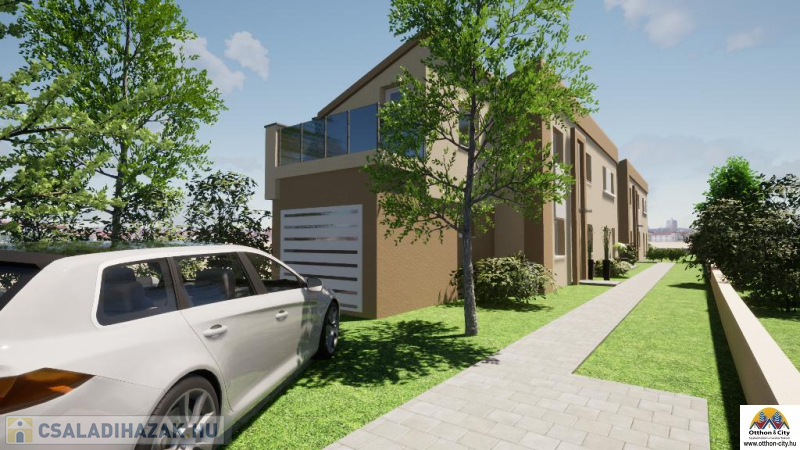 Ingatlantípus: Új építésű ikerházfél – NINCS áthallás! Csak a földszinti tárolónál kapcsolódik a két házrész. Az ár a kulcsrakész állapotra vonatkozik és még igény szerint alakítható a belső tér .