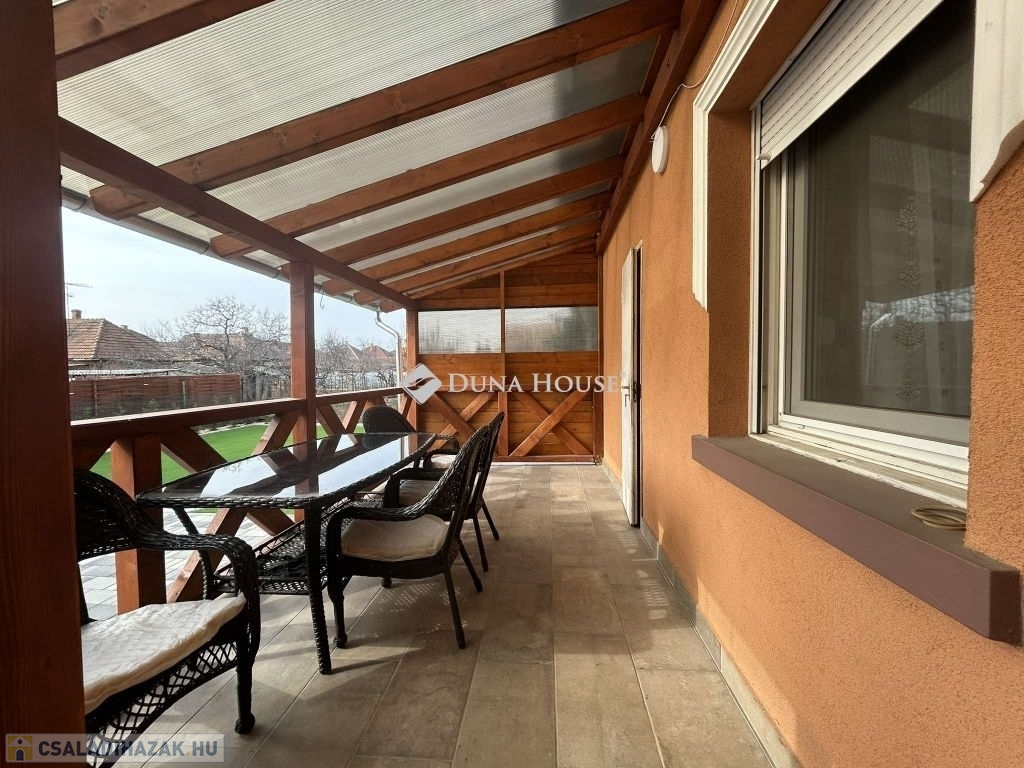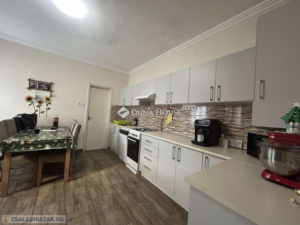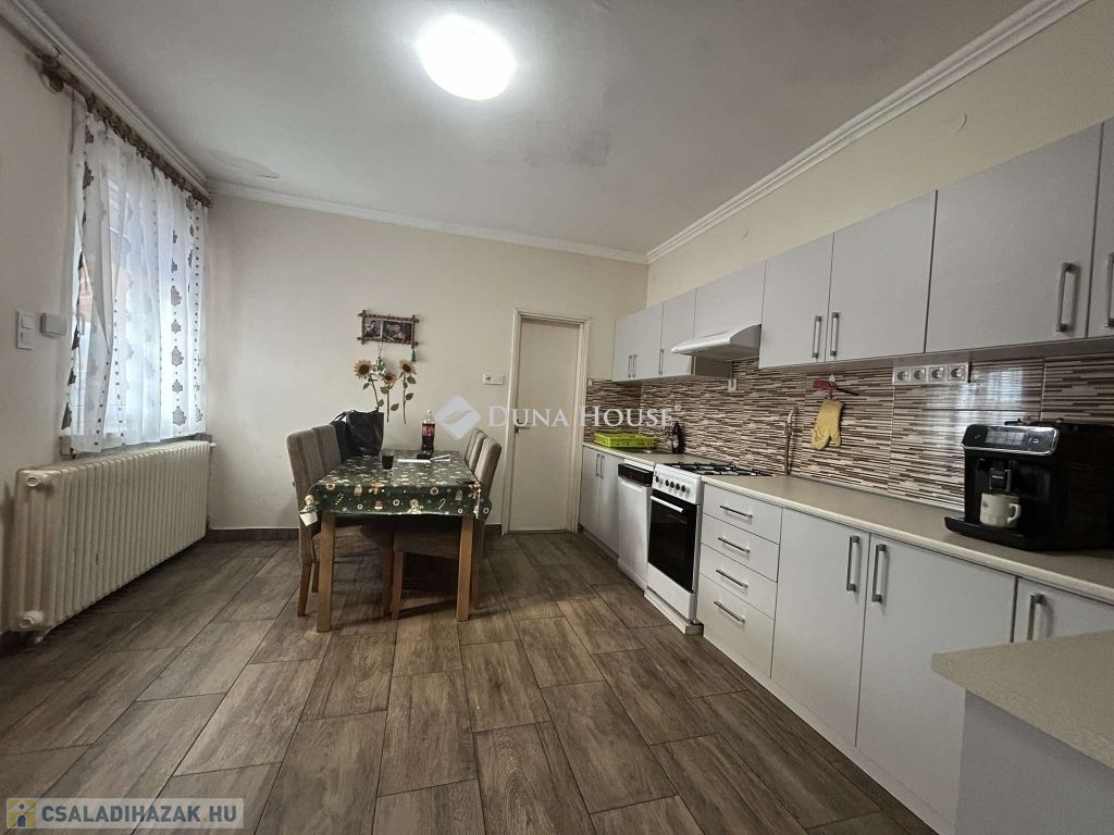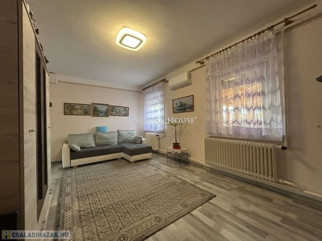 Vecsés frekventált részén kínálok megvételre egy 89 nm alapterületű nappali+ 2 egész szobás családi házat, 552 nm kerttel. Az épület a 70-es évek elején épült , beton alapon 50 cm vastag tégla falazattal rendelkezik.2024- ben műszakilag és esztétikailag is egyaránt fel lett újítva az épület. A tető szerkezete és héjazata is 1 éves. A felújítás során, a víz, villany és fűtés hálózat korszerűsítve lett,A szobákban laminált parketta míg a többi helységben kő burkolatokkal találkozunk. A nyílászárók korszerű 3 kamrás fehér színű műanyagból vannak, a bejáratnál pedig egy szintén műanyag 15 ponton záró ajtót kapott. Az ingatlan fűtése : gázcirkó , radiátoros hőleadással, alternatívaként pedig egy vegyes tüzelésű kazánt is találunk a kazán házban.A nappaliban beszerelésre került egy 3,5 kw teljesítményű hűtő-fűtő klíma. Extraként említeném meg az ingatlanban , hogy riasztó és kamera rendszer is található. Az udvar fele a nyár végén lett Viacolorral lerakva .,az udvar másik felén pedig mű fű került lerakásra.Ezen felül a telken 2 db lemez garázs kapott helyet mely a vételár részét képezi. Az utcáról elektromos kapunyitás segíti a kényelmes haza érkezést. Az ingatlan központi helyen található!Közelben iskola, óvoda, bevásárlás, piac, orvosi rendelő, vasút állomás... stb..... Amennyiben hirdetésem felkeltette érdeklődését, várom megtisztelő hívását.