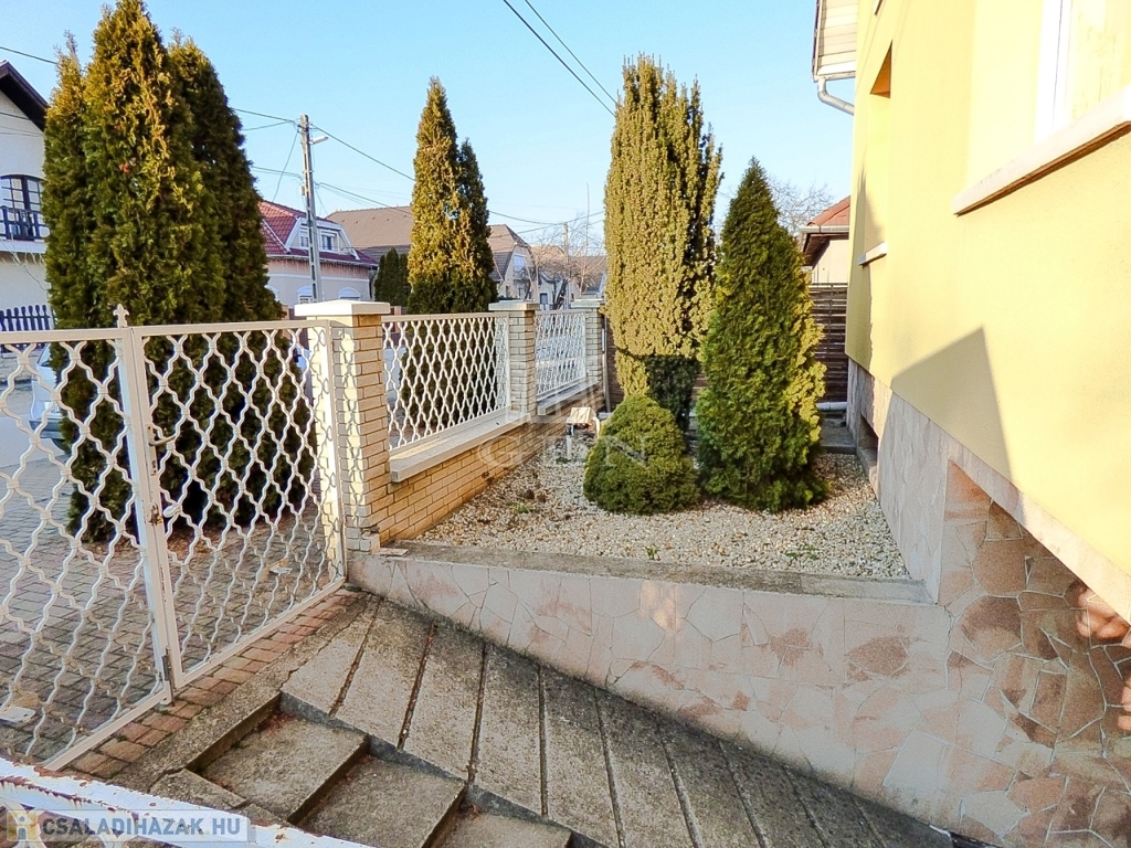 A kert kikapcsolódásra, pihenésre alkalmas, kisebb medencének is van hely a terasz mellett, továbbá fúrt kút is megtalálható.