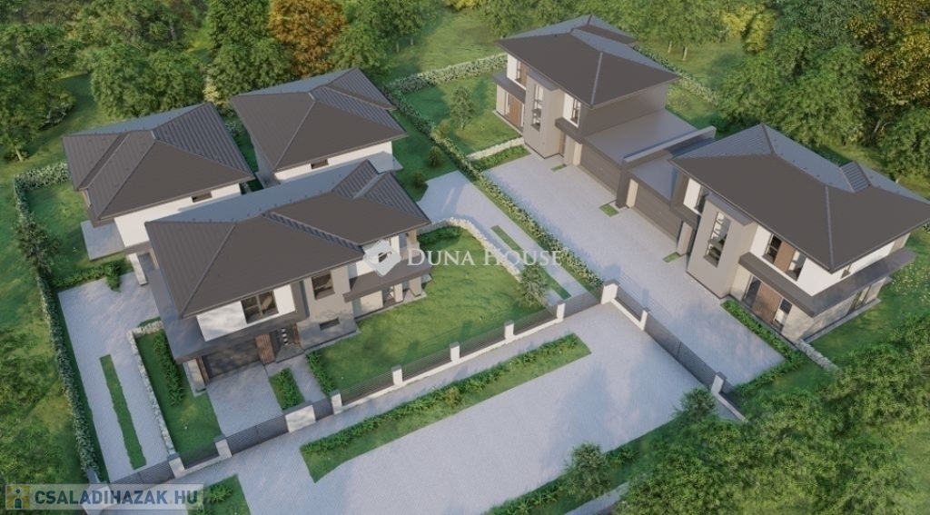 Minden otthonhoz 505 m²-es saját kertrész tartozik, így a nyugalom és privát tér garantált.