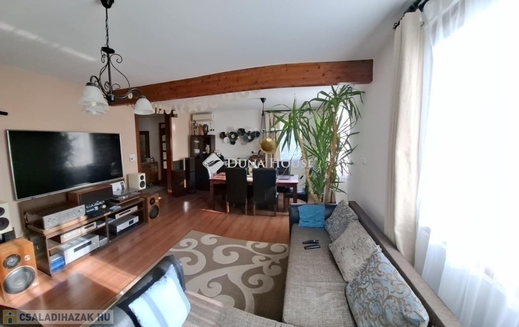 Kertvárosias környezet, tágas terek, kiváló elrendezés, megfizethető fennntartásA ház Vecsés, Andrássytelep részén található, csendes utcában, mégis mindenhez közel: Háziorvosi rendelő a szomszéd utcában, ALDI, vasútállomás 1-1 percnyi autóútra, polgármesteri hivatal 3 percre, a Market Central, Liszt Ferenc Nemzetközi Repülőtér pedig mindössze 7 percnyire található!Az épület könnyűszerkezetes, kétszintes, beton alapra épült, energetikailag is kedvező, 2021-ben 15cm-es homlokzati szigetelést kapott, valamint a két rétegű nyílászáróknak és megbízható, korszerű gázcirkónak köszönhetően a fenntartása is gazdaságos. A nyári hónapokban klímák biztosítják a kényelemérzetet.A telekterület 1275 m2 területű így bőven van hely pihenésre, sportolásra. Az előkert fákkal, bokrokkal beültetett és térkövezett is, kialakításra került egy egyállásos fedett beálló és egy kerti tároló is, valamint ezeken kívül biztosítva van a lehetőség még legalább 2 autó kényelmes parkolásához.Ajánlom ezt a házat családosoknak, vagy olyanoknak akik családalapításban gondolkodnak!A tulajdonosi háttér rendezett, az ingatlan tehermentes, banki kölcsön igényelhető rá!Díjmentes, szakértő és profi hitelügyintézéssel állunk a rendelkezésére.Megtekintéssel kapcsolatban keressen bátran a hét minden napján!