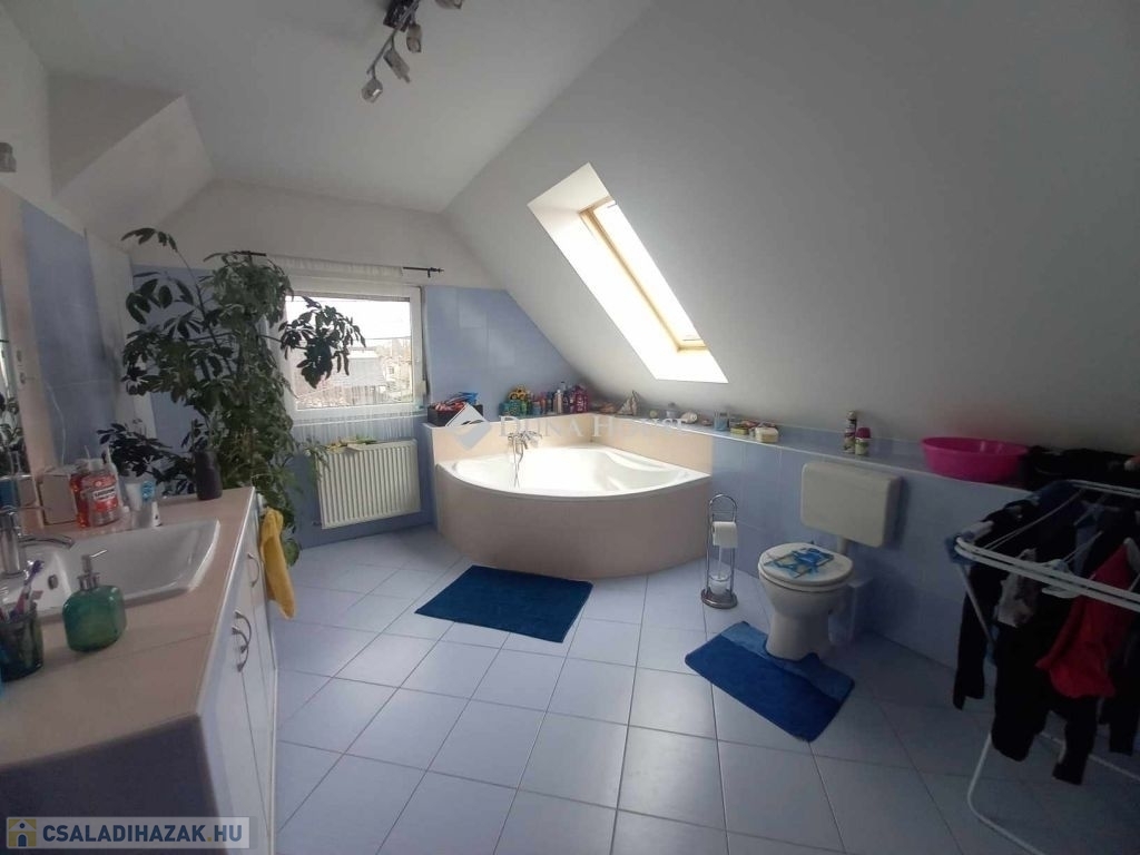 Vecsésen 3 szintes, napelemes, jacuzzis extra családi ház!Eladásra kínálok Vecsés csendes utcájában egy 560 m2-es telken lévő 265 m2-es 3 szintes, dupla összkomfortos,6 szobás minőségi családi házat, sok extrával.A ház 2006-ban épült téglából,+ 20 cm-es hőszigetelő vakolattal burkolva.Fa fedélszerkezet, cserép héjazással,20 cm-es szigeteléssel ellátva.8 kw teljesítményű napelemmel felszerelve ,10-12000 kw éves kapacitással, így a ház energiaellátása és a plusz telepített hőszivattyún keresztüli fűtéssel, mely részben padlófűtést is takar, éves viszonylatban szinte 0 szaldós, így csak vízdíjat kell fizetni!Hőszigetelt műanyag nyílászárók,BOSCH márkájú, prémium minőségi konyha, beépített háztartási gépekkel,nappaliban nagy teljesítményű kandallóval.Kültéri kamerarendszer, távfelügyeletre bekötött riasztó.Kültéri jakuzzi és medence, autómata öntözőrendszer szép parkos kerttel, gyerek játszótérrel.A ház az elmúlt pár évben külső-belső felújítást kapott minőségi anyagokból.Alsó szinten, hatalmas amerikai konyhás nappali, kandallóval. Egy szoba, fürdőszoba/wc, kamra, előszoba. Udvar felé 17 m2-es fedett terasz, kazánház valamint egy 28 m2-es két autó parkolására alkalmas fűtött zárt garázs.Az emeletre extra kovácsoltvas korláttal ellátott félkör íves lépcsőn feljutva, további 3 szoba található melyből 2 szoba külön gardrobbal és egy szoba külön fürdő+wc-vel, ezen kívül plusz egy fürdőszoba káddal/wc-vel, közlekedő, tároló valamint 13m2-es erkély is tartozik két szobához.A tetőtérben 34m2-es hasznos alapterületen, közlekedő és szoba kapott helyet, klímával ellátva.További extrák: elektromos kapu, elektromos garázsajtó, fúrt kút, ipari áram.Autóval 2 percre a városközponttól.Ajánlom nagy családosoknak, akár több generációnak is.Jöjjön el, tekintse meg és szeressen bele a minőségébe.Független hiteltanácsadással is állunk rendelkezésre.