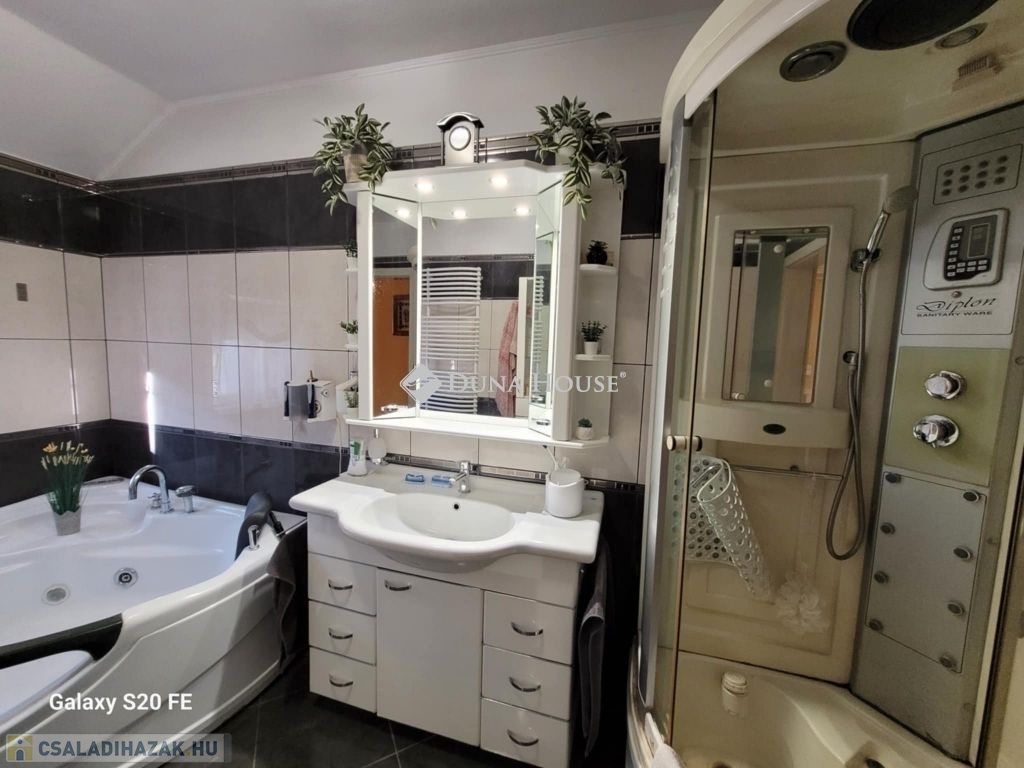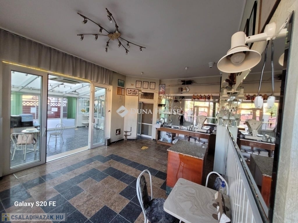 Eladó Vecsés frekventált részén egy kétgenerációs családi ház külön bejáratú lakrészekkel, valamint egy 143 m²-es, sokoldalúan hasznosítható üzlethelyiség korábban cukrászda, most új funkcióra vár.Földszint: 112 m² nappali, 2 hálószoba, konyha-étkező, fürdőszoba, gardróbEmelet: 114 m² külön bejárat, nappali, 2 hálószoba, konyha-étkező, fürdőszobaÜzlethelyiség: 143 m² több helyiség, vizesblokkok, terasz, beállóGarázs + tárolók: 176 m²Parkosított kert: 500 m²