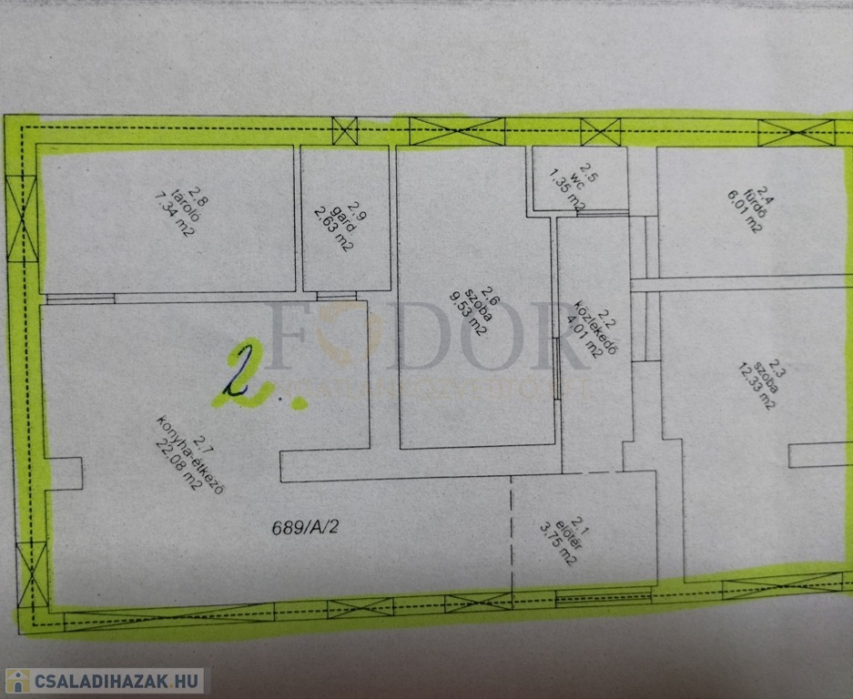Az ingatlan nyélen keresztül megközelíthető, nettó 69 m² alapterületű, 2 szobás lakás, amelyhez 500 m² saját telekterület tartozik.