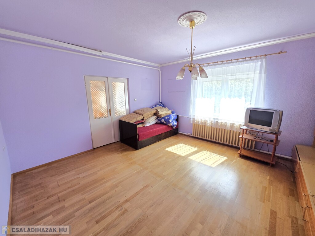 Az ingatlan jól alakítható, a helyiségek világosak. A házbe belépve előszobába érkezünk, mely körbe ablakos, így rendkívül világos. Innen az étkező nyílik, a folyosó végén a fürdőszoba található és egy félszoba. Ezzel szemben a nappali és innen nyílik a másik szoba.