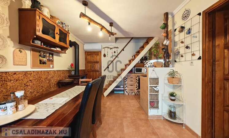 Földszinten 6 kW-os csempekandalló biztosítja a kellemes meleget