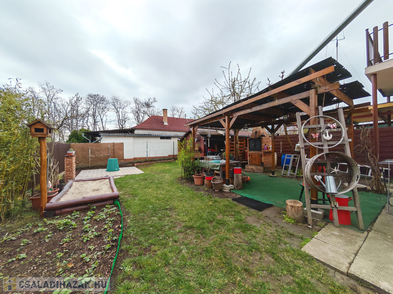 A házhoz tartozik egy 277 m²-es, összközműves, kizárólagos használatú telekrész.
