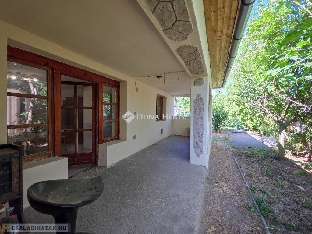 A 601 m²-es telken fekvő házhoz saját, zöld kert, fedett terasz és pince is tartozik.