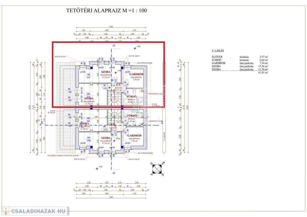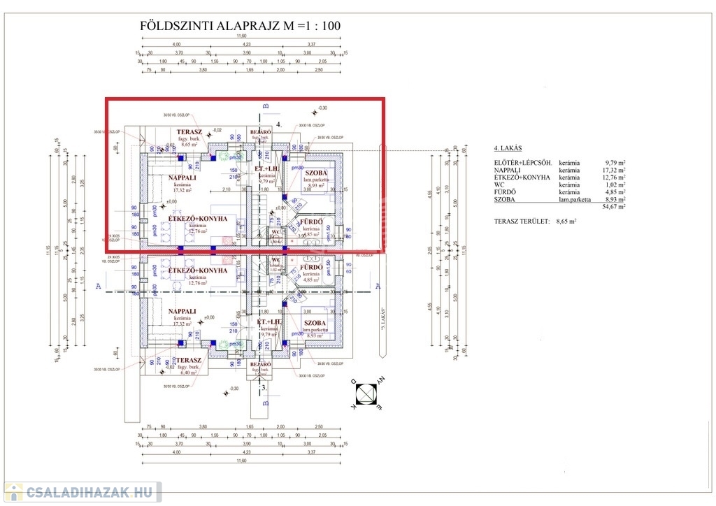 A lakás 96 nm lakóterülettel rendelkezik, a földszint nappali, étkező, konyha, hálószoba, fürdőszoba, külön wc, közlekedő, az emelet két szoba, egy félszoba, fürdőszoba wc-vel, közlekedő elrendezésű.