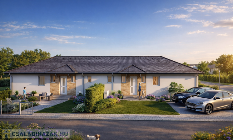 Az ingatlan - ikerházi kialakítása ellenére - saját, körbekerített kertrésszel, külön bejárattal és önálló kocsibejáróval rendelkezik, így a mindennapokban valódi privát életteret biztosít. 80 m²-es lakóterében praktikus elrendezésű három szoba és egy tágas nappali ad kényelmes életteret akár nagyobb család számára is. Az 500 m²-es telek kellemes méretű kertet kínál, a térkövezett kocsibeálló a mindennapi használatot teszi egyszerűvé és kényelmessé.