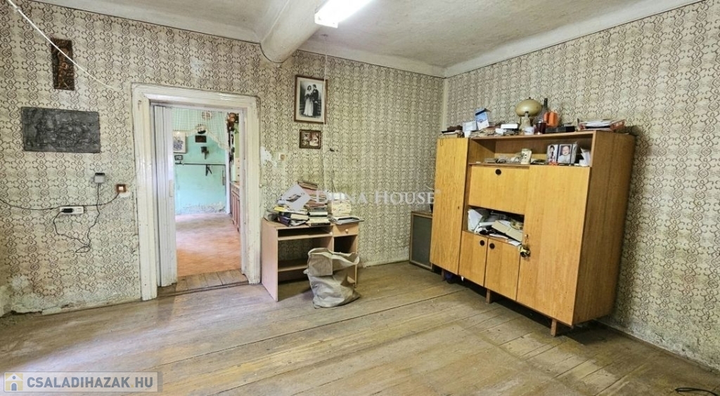 egy 63nm-es, jelenleg 2szobás, de kis ráfordítással 3szobássá alakítható, vályog falazatú parasztházat.