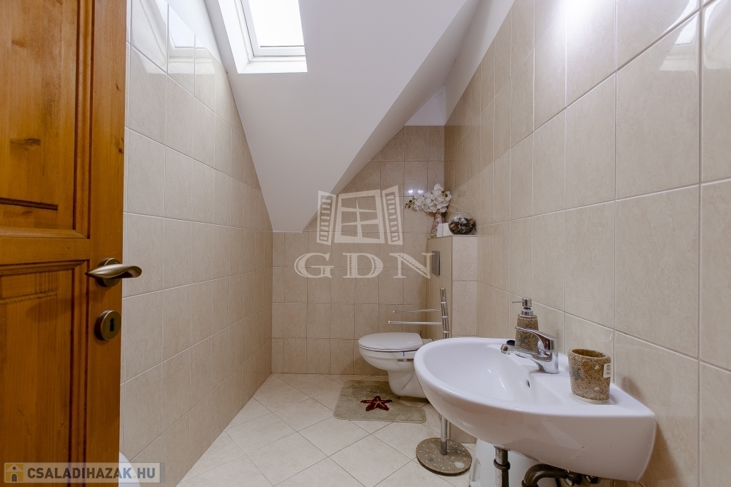 Az épület 2006-ban épült, beton alapra, 38 cm-es Phorotherm téglából, 7 cm dryvit szigeteléssel, beton födémmel, betoncserép fedéssel. Épület körbe műanyag thermo nyílászárókat kapott, elektromos redőnnyel és rovarhálóval ellátva. Fűtésről és melegviz ellátásról gázkazán gondoskodik, mindkét szinten padlófűtéssel. A felsőszintre vezető lépcső, korlátja és fa burkolata az ingatlan tartozéka, rendelkezésre is áll, csak ha az új tulajdonosnak, kell megcsináltatnia.