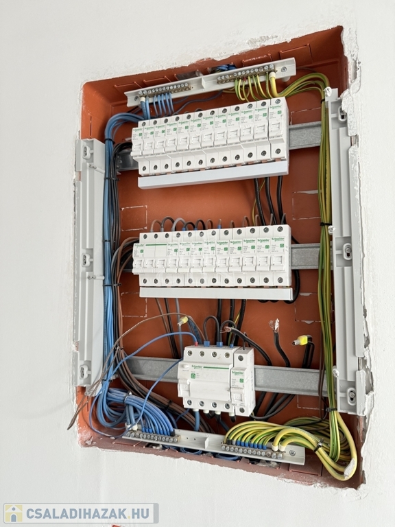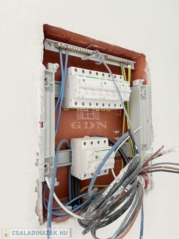 A beltéri ajtók bruttó 70.000 Ft/db értékig választhatók. A villamos hálózat 1 fázisú, 32A terhelhetőségű, bővített konnektor- és világítási pontokkal, minden szobában TV-, internet- és telefonkiállással.