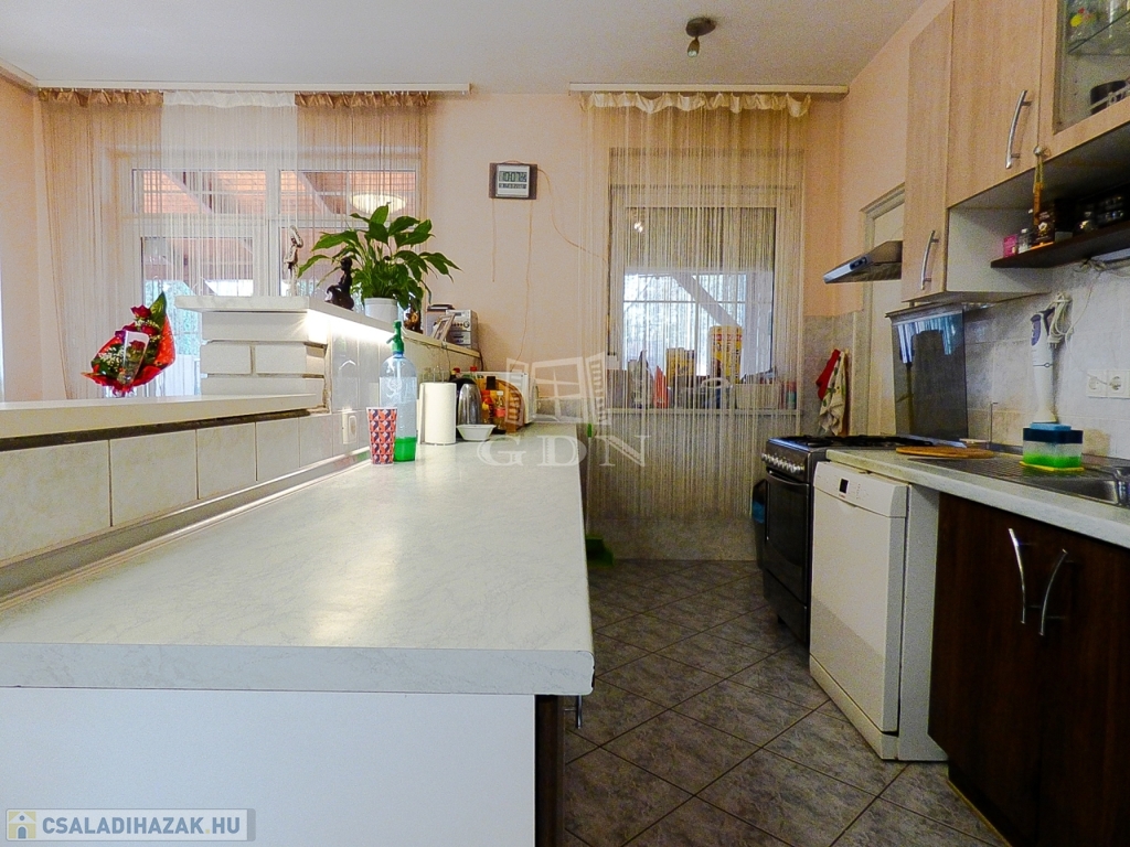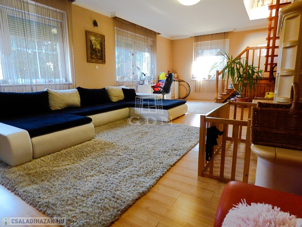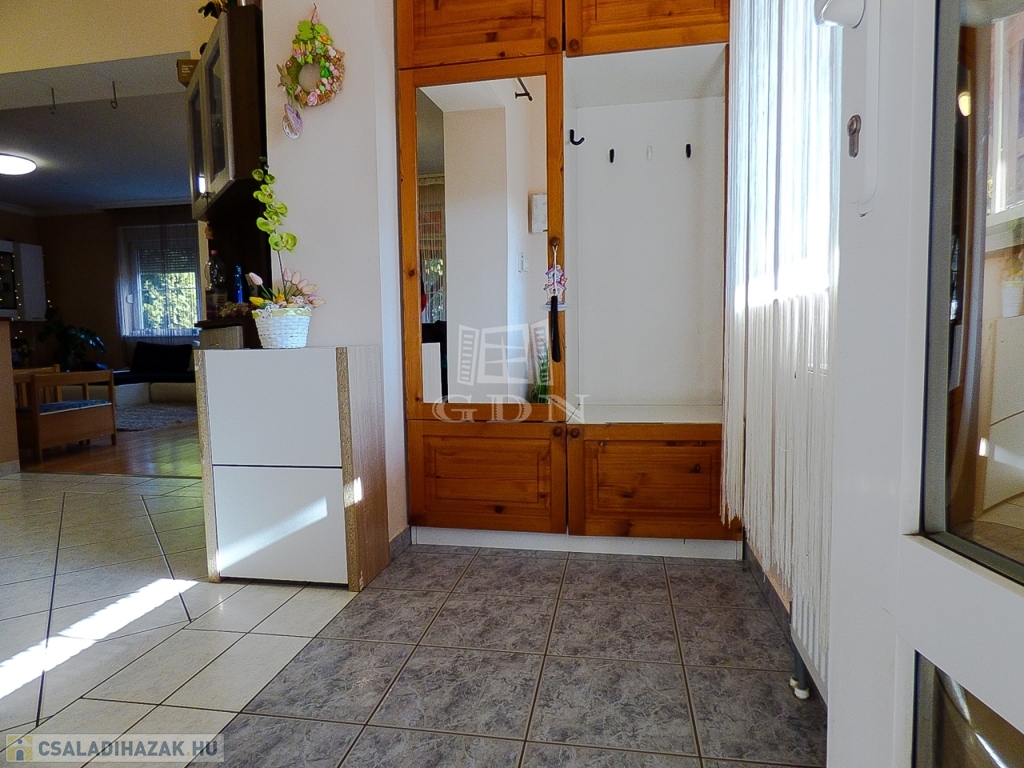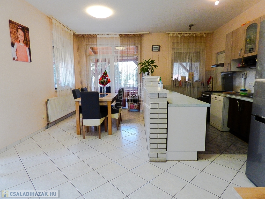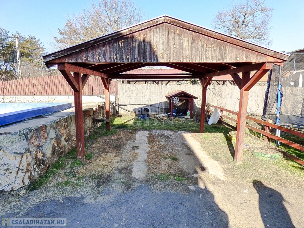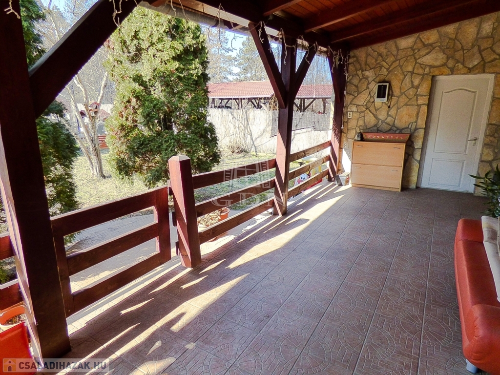 Veresegyház csendes mellékutcájában, a tavak közelében, 856 nm-es telken lévő, 1996-ban saját részre épült, 180 nm-es, két szintes, 5 szobás, vasbeton födémes, jó állapotú, gáz cirkó (hideg burkolatok alatt padlófűtéssel a földszinten), - fa tüzelésű kandalló - és hűtő-fűtő klíma fűtéses, dupla komfortos, Keleti fekvésű, riasztóval felszerelt, nagy erkélyes (2*9,5 nm) - és teraszos (35 nm), medencés családi ház eladó.