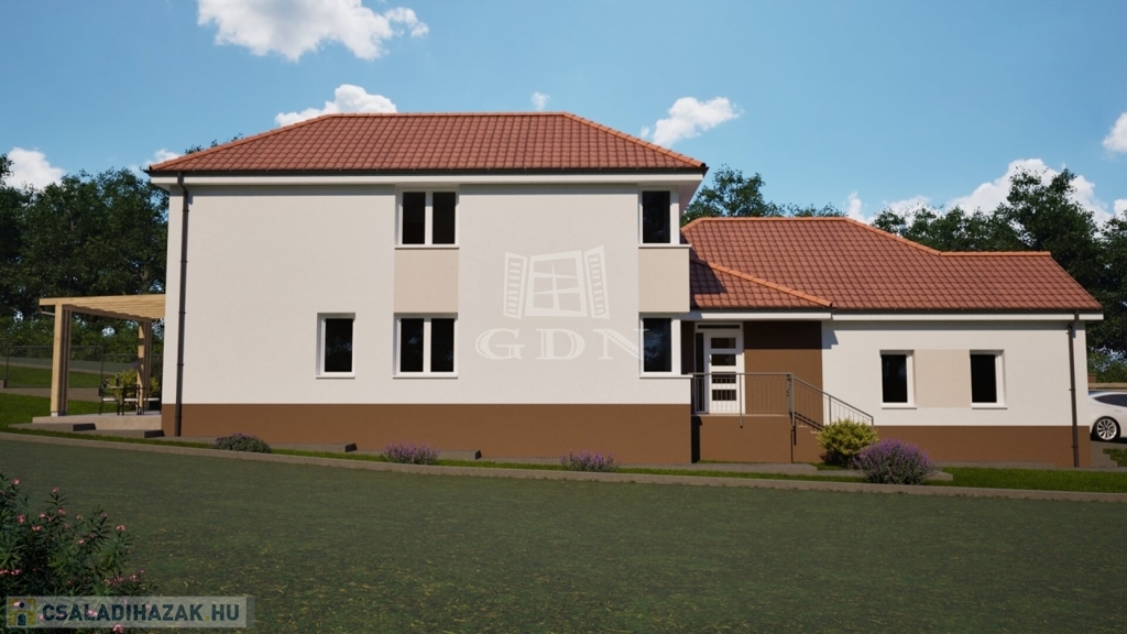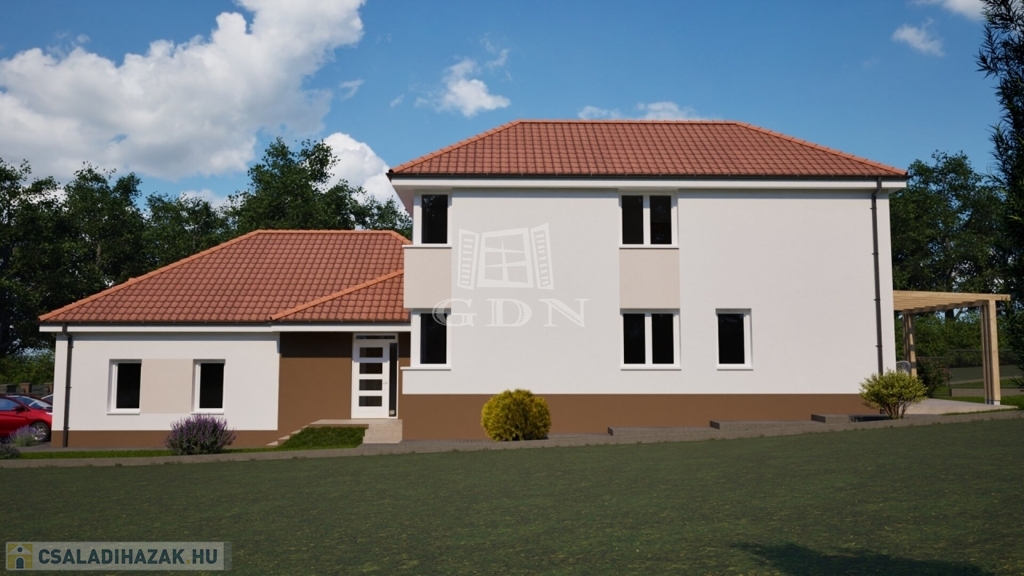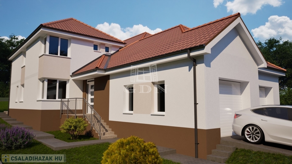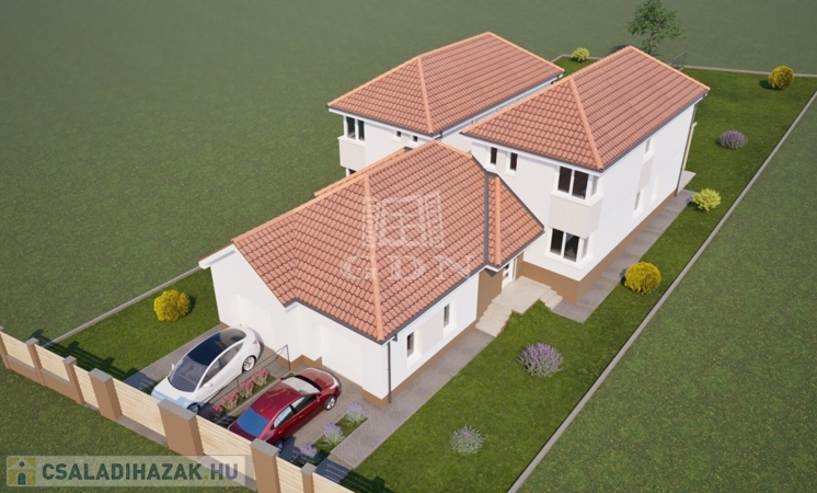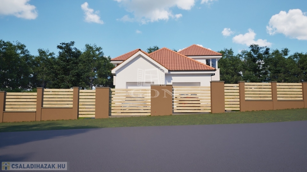 A lakótér nettó 120 m2 + 22 m2 garázs + 17,4 m2 terasz + 2,53 m2 fedett tároló.