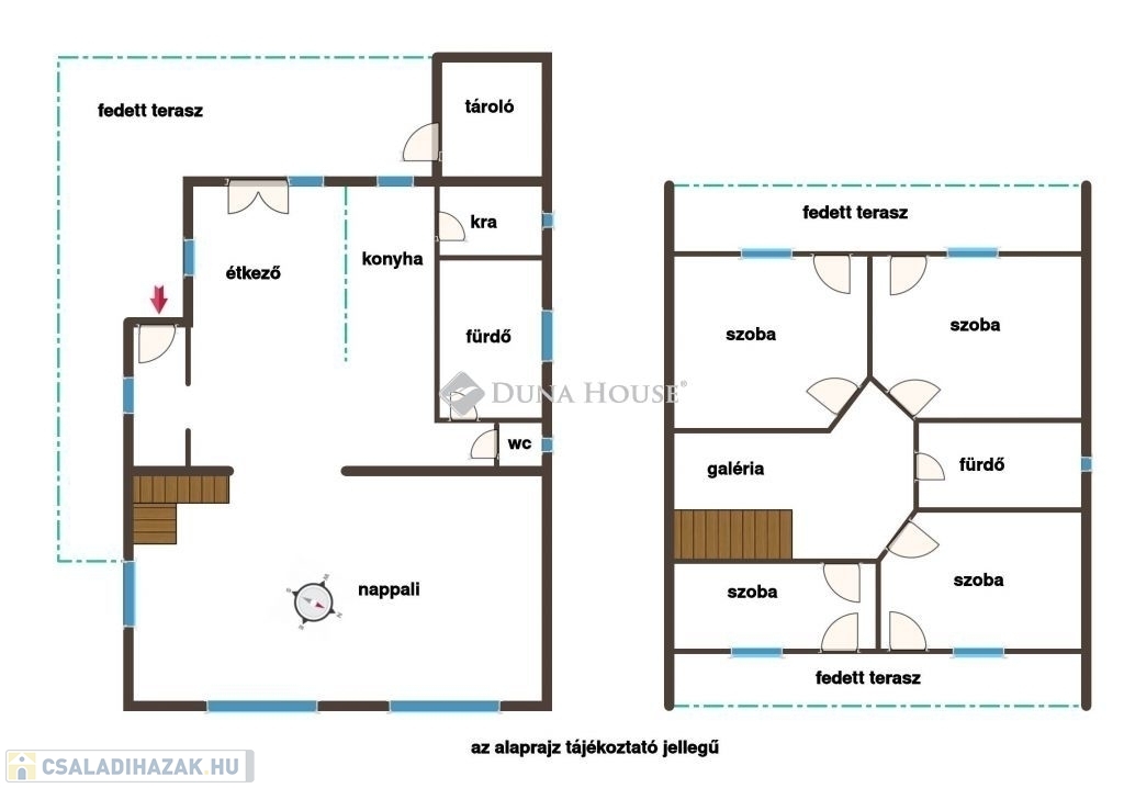 - Garázs: 28,8 m² + felette 23 m² szoba