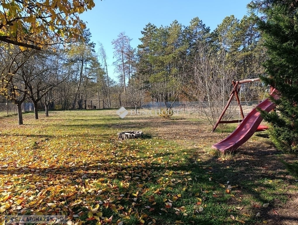 A kert gondozott, zöldfelületekkel, játszótérrel, gyümölcsfákkal és pihenőterülettel, amely ideális családi kikapcsolódásra.