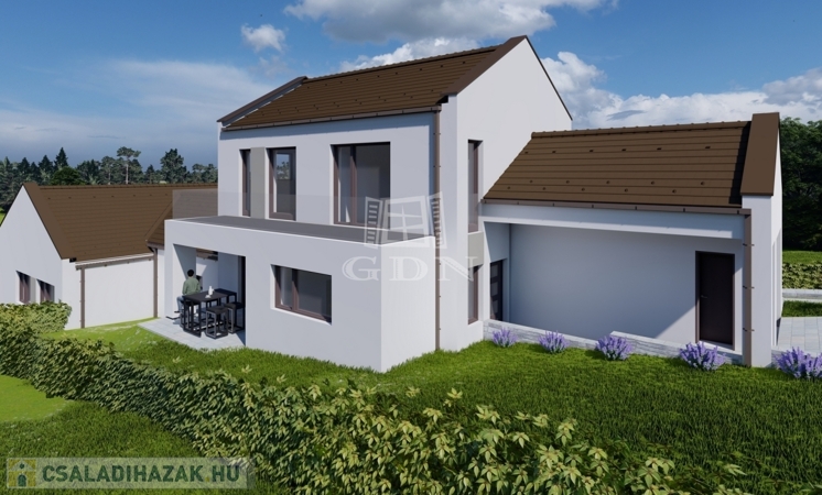 Parkolás: saját 36 nm-es dupla garázs, elektromos kapu előkészítés.