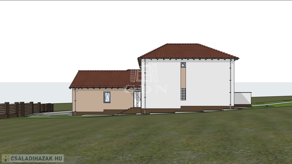 Ugyanitt az ikerház másik fele is eladó, amely 1 szintes, 4 szobás épület, hasonló műszaki tartalommal, amelynek az irányára: 145 800 000 Ft