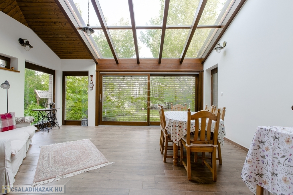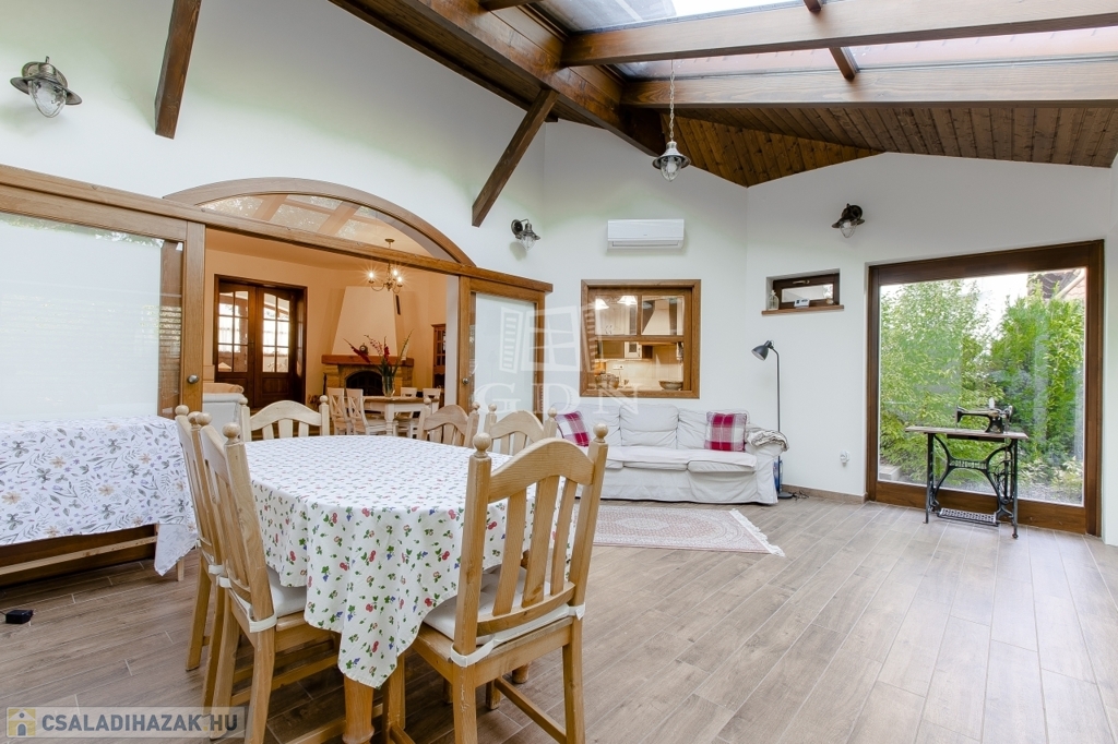 - Tágas télikert elektromos zsaluziával és árnyékolással – egész évben élvezhető élettér.