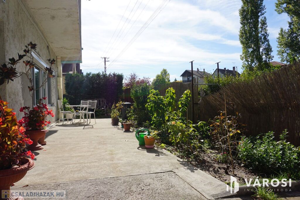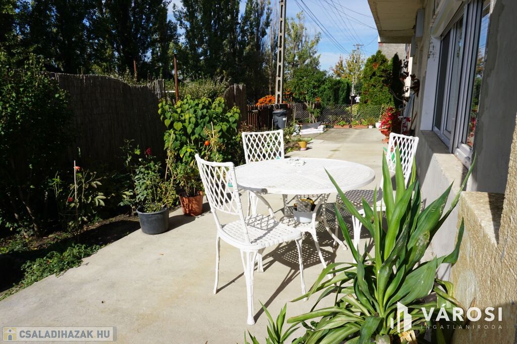 Nagyméretű terasszal, a bejárat mentén és közel 300nm-es telekrésszel rendelkezik mely teljesen prívát.