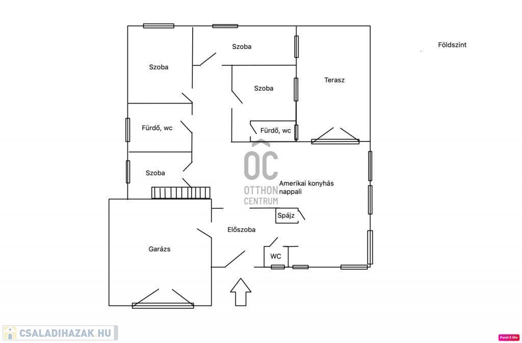 Földszint: amerikai konyhás nappali, étkező, szülői háló privát fürdőszobával