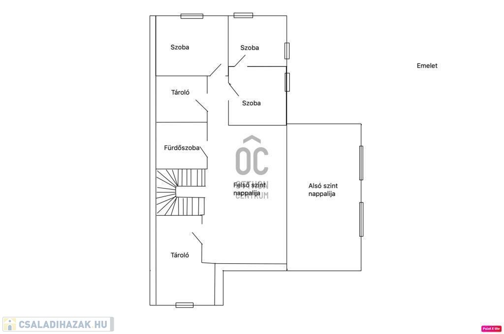 Emelet: több hálószoba és egy galériás tér – dolgozószobának, játszószobának vagy második nappalinak is ideális