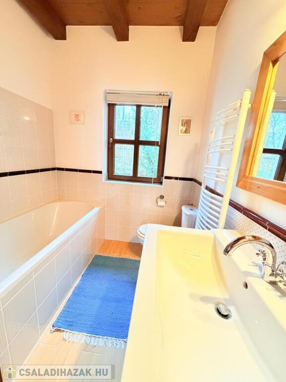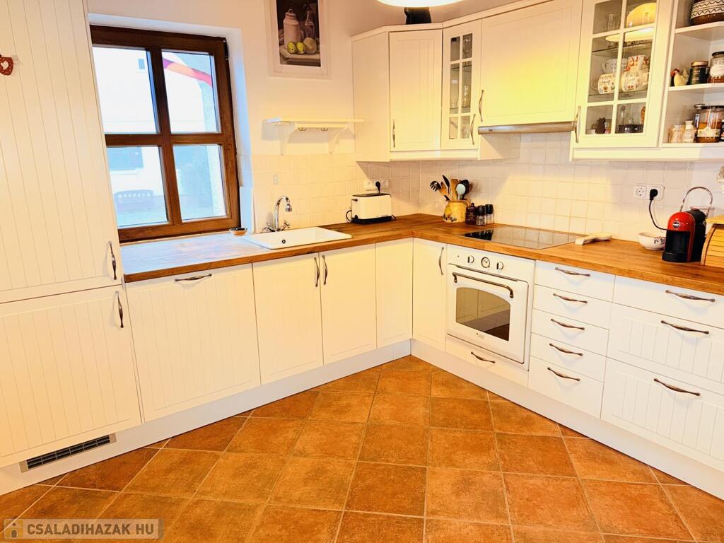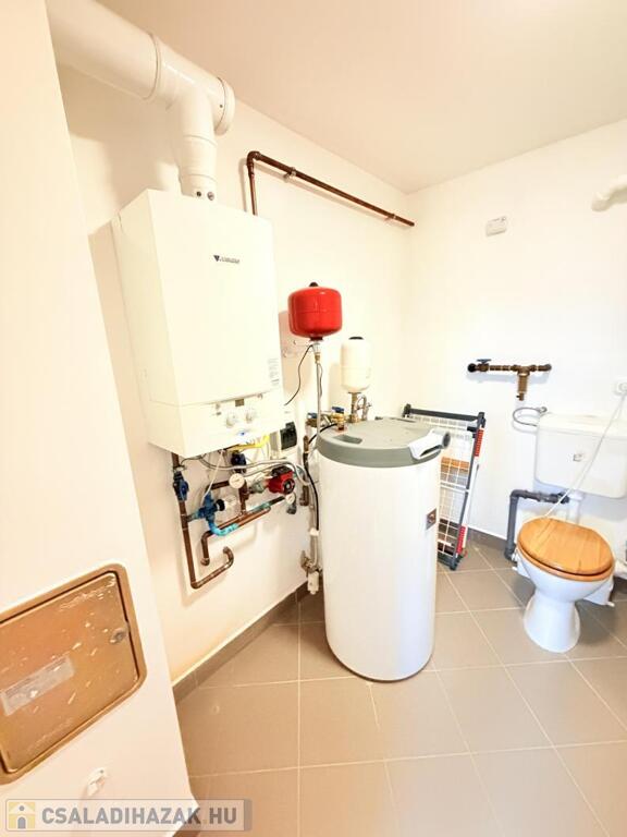 Fűtés: Junkers kondenzációs kazán új melegvíz-tárolóval, padlófűtés a lakótérben, radiátorok a hálókban, (telefonról vezérelhető)öntöttvas kandalló,