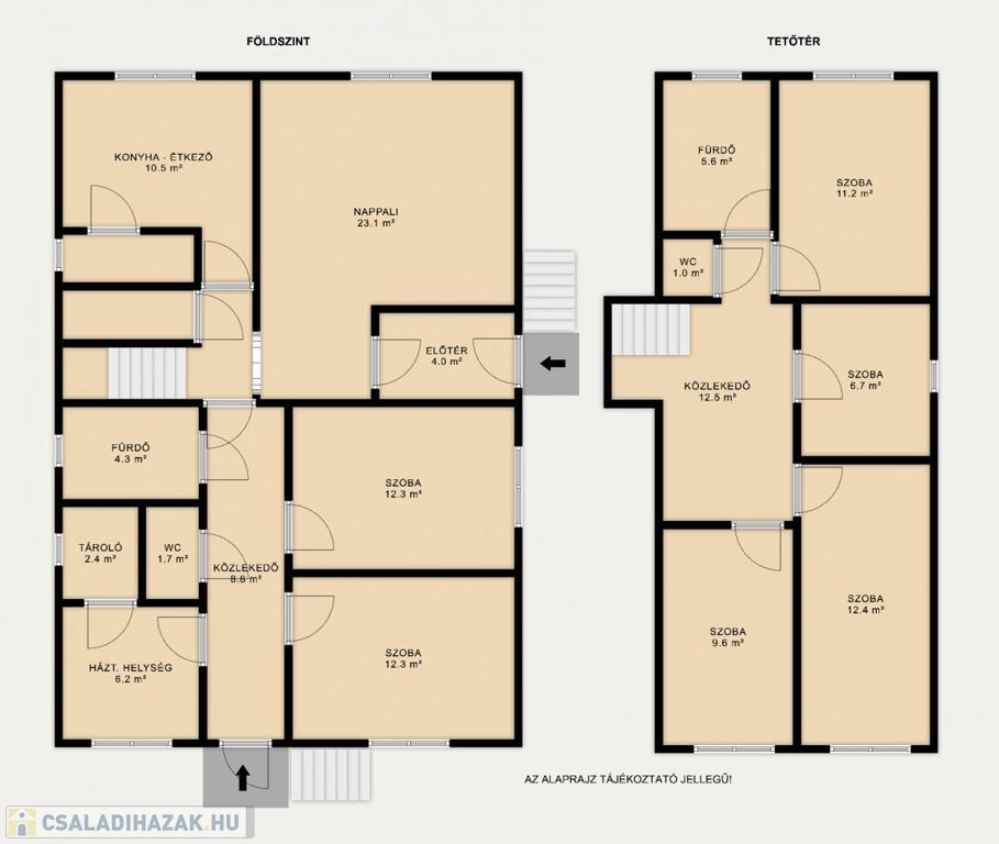 A tágas belső terek, a jól átgondolt elrendezés és a külön bejáratok révén ez az otthon kiváló lehetőségeket rejt mind családosok, mind befektetők számára.
