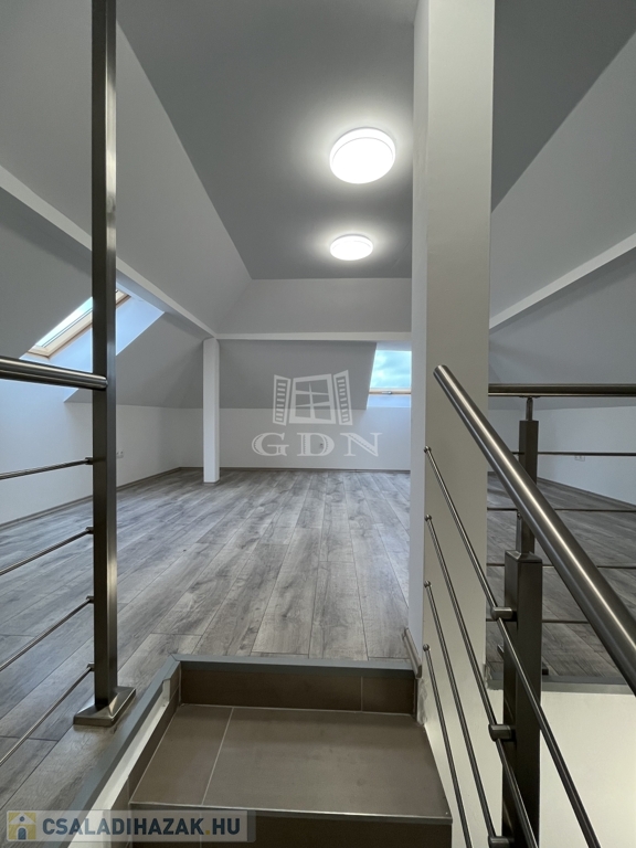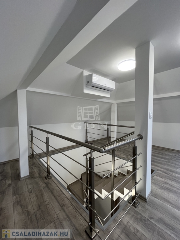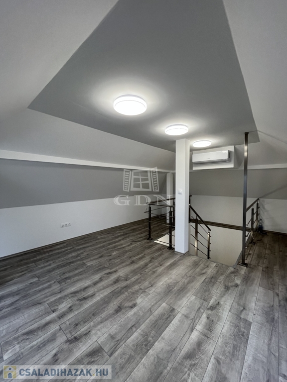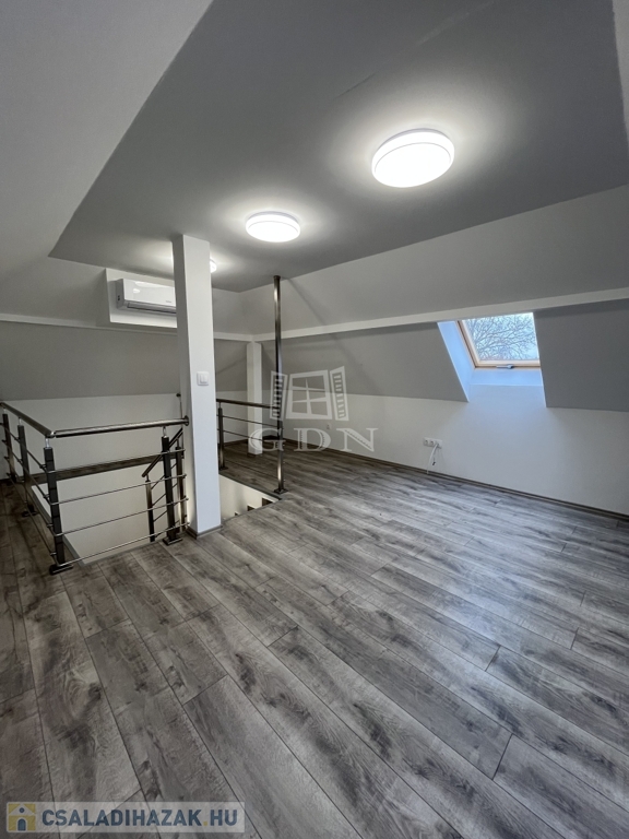 A 70 m²-es földszinthez egy 25 m²-es, igényesen beépített tetőtér kapcsolódik, így összesen négy kényelmes, jól elrendezett szoba áll rendelkezésre.