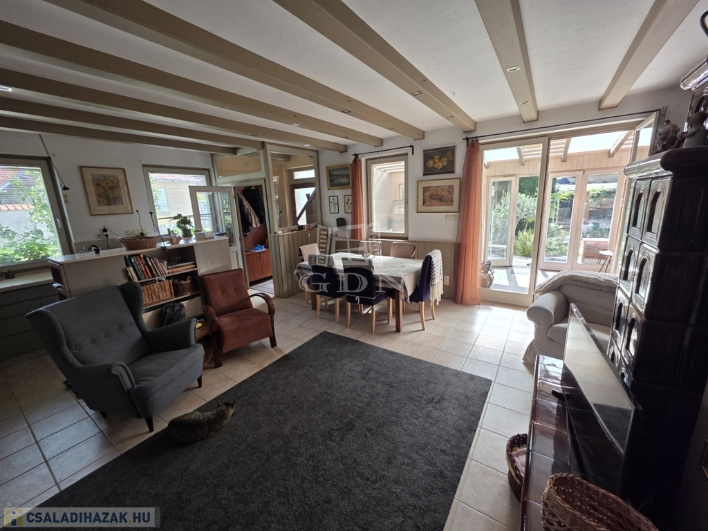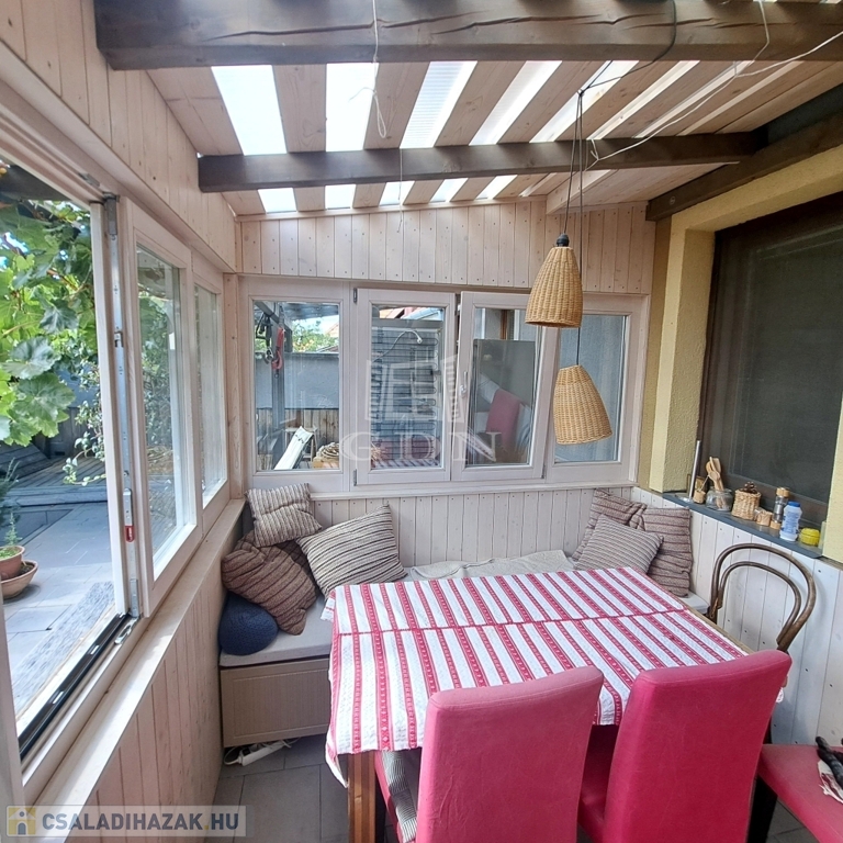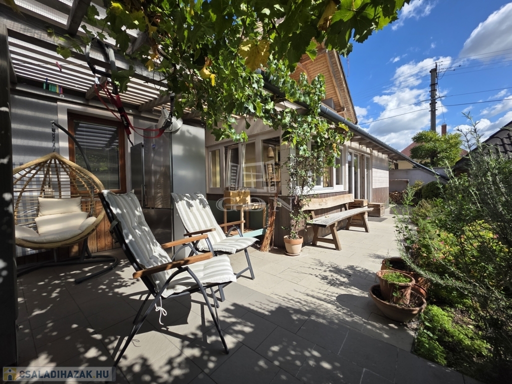 - Továbbá kialakításra került egy szép télikert is, amely nemcsak esztétikai értéket képvisel, hanem télen egyfajta plusz hőszigetelő rétegként is funkcionál, hozzájárulva a hőveszteség csökkentéséhez és az ingatlan kiváló energiahatékonyságához.