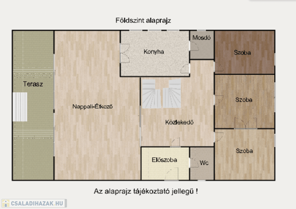 Előtér, amelyben található egy vendég wc nagy méretű előszoba, melyből nyílik a hatalmas nappali, konyha, mosdó és 2 egymásból nyíló tolóajtóval rendelkező szoba, amelyet igény szerint könnyedén egy nagy szobává lehet alakítani valamint még egy szoba ebből igény esetén kialakítható egy fürdőszoba, mert a vízállások kiépítettek.