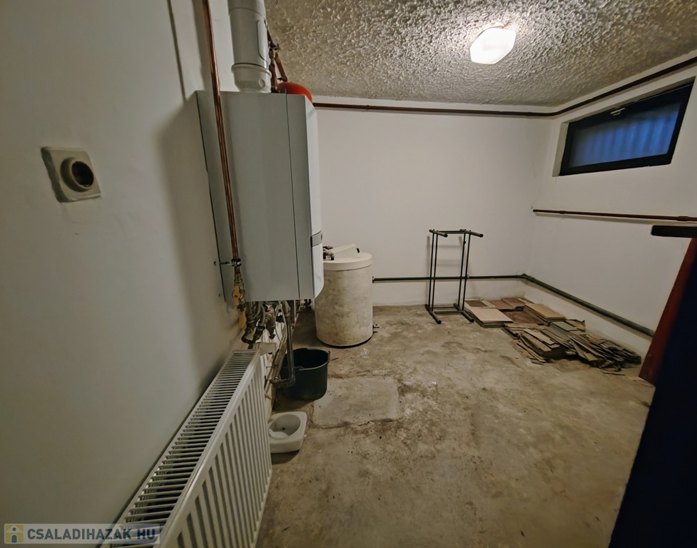 2 állásos garázs, amelyből nyílik egy nagy méretű helyiség, ezáltal 4 autó is elfér vagy ideális műhely-kialakításra valamint kazánház és 2 tároló helyiség.