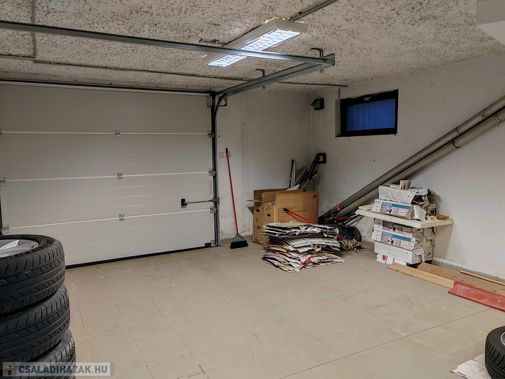 2 állásos garázs, amelyből nyílik egy nagy méretű helyiség, ezáltal 4 autó is elfér vagy ideális műhely-kialakításra valamint kazánház és 2 tároló helyiség.