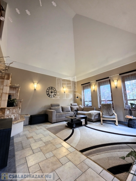 Nagy, galériás nappali – melynek éke a hangulatos cserépkályha