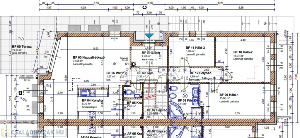 - A tetőtérben további szobák és fürdő kiépítésre előkészítve