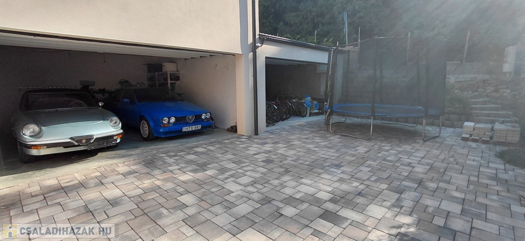 - Parkolás a garázsokban (két dupla garázs), a telken ill. az utcán is lehetséges. Az egyik garázs a ház részeként, azzal megegyező szerkezettel, hőszigetelt falakkal épült, így igény szerint itt egyszerűen kialakítható egy újabb külön lakrész, vállalkozásra alkalmas helyiség. (a víz és csatornacsatlakozások rendelkezésre állnak).