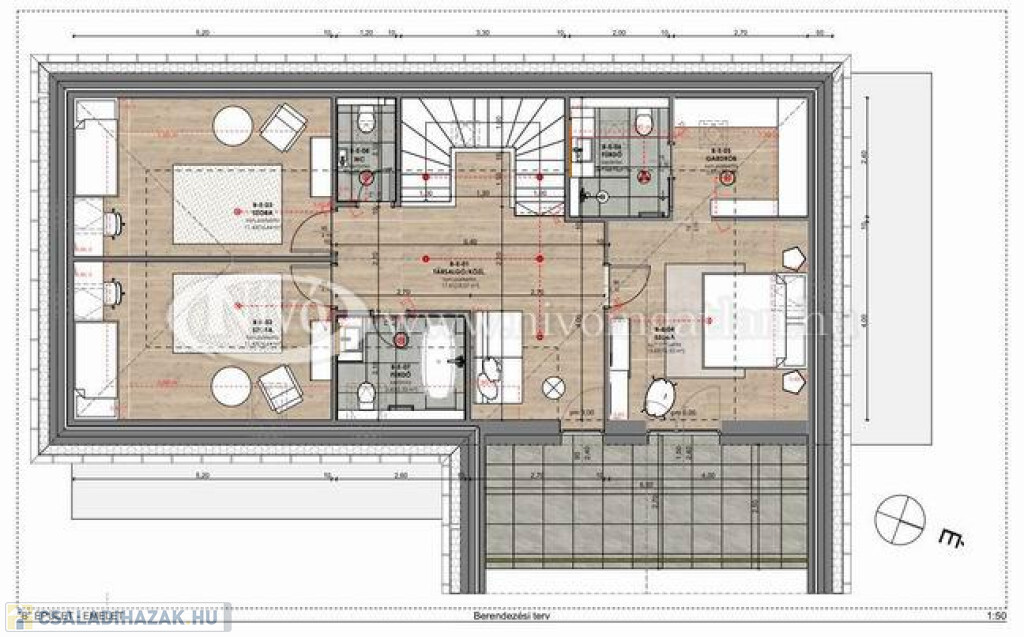- A földszinten amerikai konyhás nappali, hálószoba, fürdő+WC, kamra, fedett terasz, fedett autóbeálló, az emeleten pedig további 3 hálószoba, 2 fürdő+WC,előtér, gardrób, WC, valamint egy fedett terasz kerül kialakításra.
