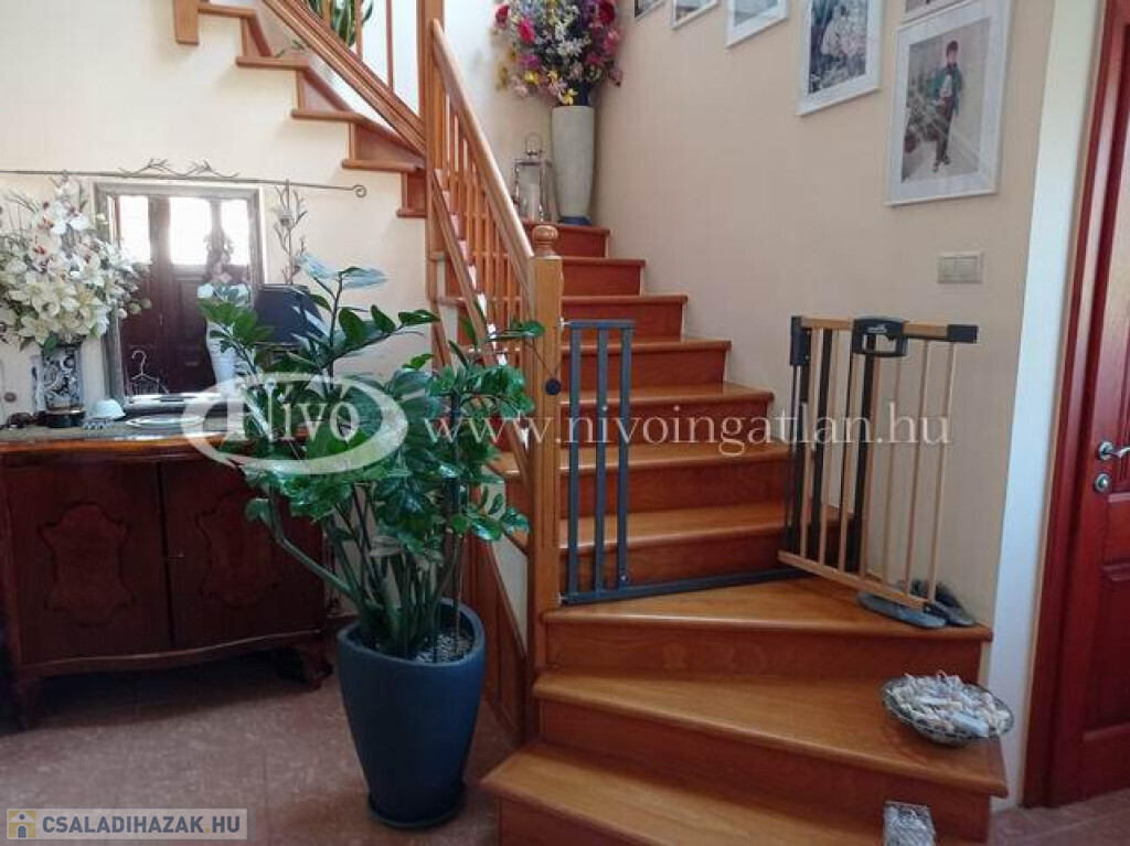A földszinten található, egy nagy belmagassággal rendelkező előszoba, egy tágas, világos nappali-konyha-étkező, két hálószoba, egy zuhanyzós fürdőszoba amiben található egy száraz gőzfürdő is, egy külön WC illetve a -1 egy szintre való lejárat (üveglépcsővel). Az emeleten található két hálószoba, egy sarokkádas fürdőszoba WC-vel, bidével illetve egy zuhanyzós fürdőszoba WC-vel.