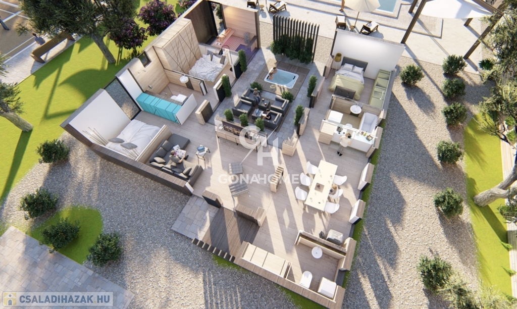 - Belső terasz: 32 m2