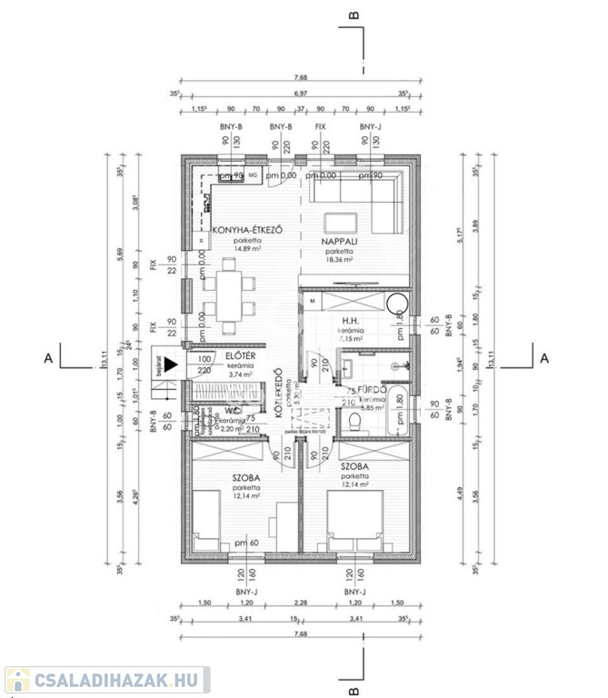 - Konyha-étkező: 14,89 m2