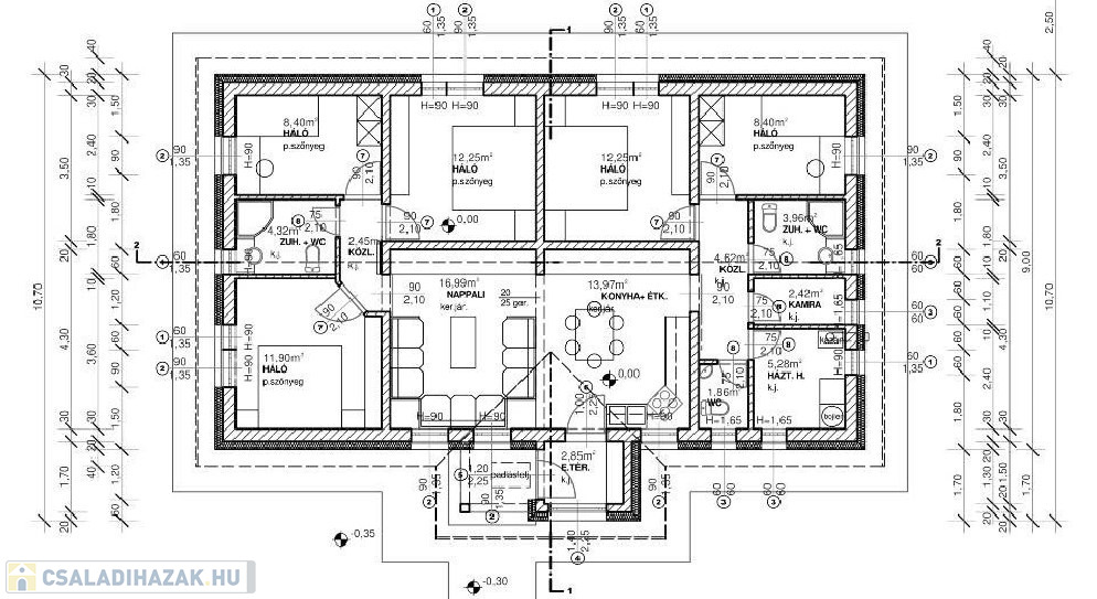 - szigetelés: 30cm mennyezetben, 20cm oldalfalon, 10 cm padlóban