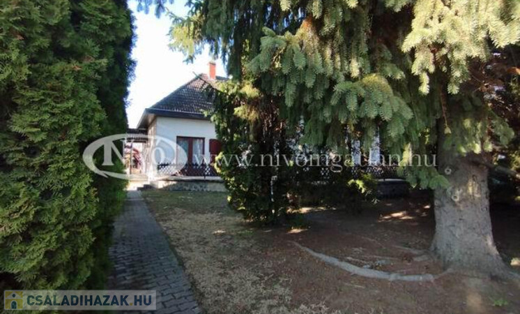 Veszprém-Szabadságpusztán, csendes, nyugodt utcában, 1345 m2-es körbekerített, parkosított telken, ’90-es években épült, tégla építésű, magasított tetőtér beépítéses családi ház.