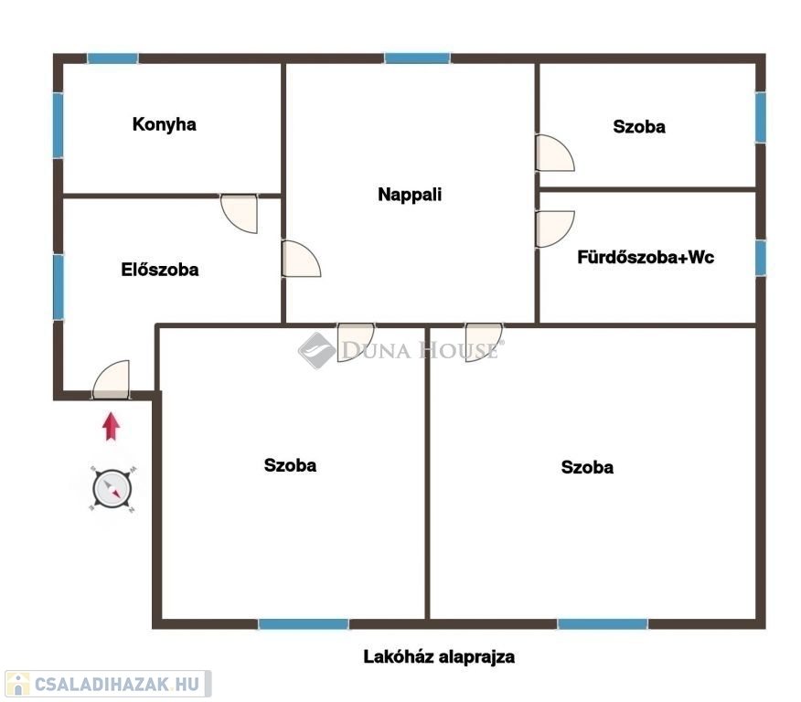 - Egy 85m2-es, nappali + 3 hálószobás lakóház, mely a szobákony kívül ablakos konyhát, fürdőszoba+wc-t és egy előszobát tartalmaz. A ház tégla építésű, cserép fedésű, igény szerinti felújítás után költözhető állapotban van. Fűtését gázkonvektorok szolgáltatják.