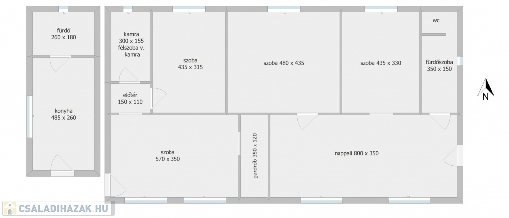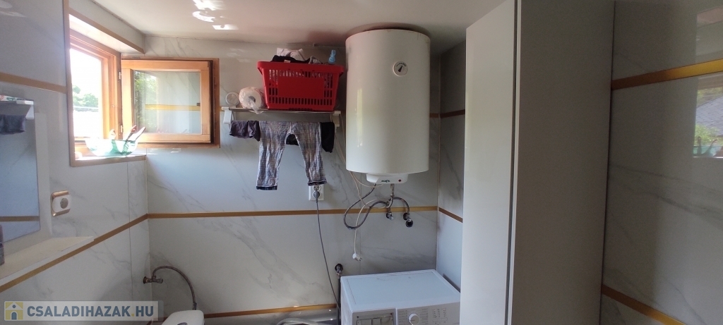 Az ingatlan egy válaszfal kibontásával, egyszerűen nagy méretű Csok-ra is alkalmas házzá alakítható vissza.