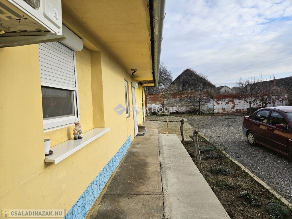 Eladó felújított családi ház Baranya megyében, VokánybanEladásra kínálunk Baranya megyében, Vokány településen egy rendezett tulajdoni viszonyokkal rendelkező, 68 m² alapterületű, 2022-ben teljes körűen felújított családi házat.Az ingatlan főbb jellemzői:Alapterület: kb. 70 m²Telek mérete: 492 m², sík területFalazat: vegyes falazatFelújítás éve: 2022Az ingatlan rövid időn belül költözhetőFelújítás során elvégzett munkák:Teljes víz- és villanyhálózat cseréjeÚj résvezetékek kiépítéseÚj, műanyag, hőszigetelt nyílászárókÚj bejárati ajtó2 db hűtő-fűtő klímaÚj burkolatokÚj, modern fürdőszobaMelegvíz ellátás villanybojlerrelFűtés:2 db hűtő-fűtő klímaFatüzelésű kandallóKözművek:Vezetékes vízVillamos energiaSzennyvíz ülepítőGáz az utcában elérhetőTartozékok, melléképületek:6 m² pince / tároló18 m² garázsElhelyezkedés és közlekedés:Jó közlekedés Pécs és Siklós és Villány irányábaBusz- és vasúti közlekedés elérhetőPécs kb. 25 km, Villány 15 km, Siklós kb. 10 km távolságra találhatóAz ingatlan ideális választás állandó lakhatásra vagy befektetésnek egyaránt.Érdeklődés esetén keressen bizalommal!