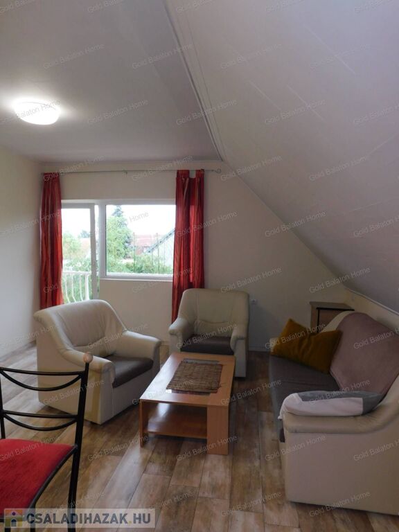 - tetőtér: lépcsőház, társalgó, nappali – konyha, balatoni panorámás erkély, 2 hálószoba, fürdőszoba káddal + fürdőszoba zuhanyzóval +WC