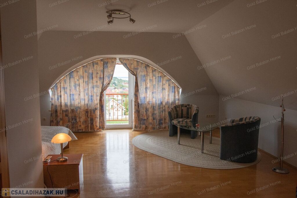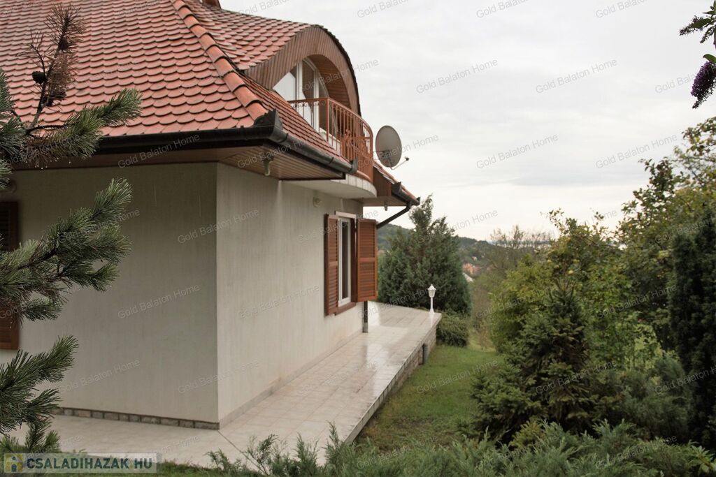 Panoráma felső szinten - eladó családi ház az erdő alatt Vonyarcon A Gold Balaton Home Ingatlaniroda eladásra kínálja a 731200031-es sorszámú, kivételes lehetőséget: egy panorámás családi házat Vonyarcvashegy északi oldalán, az erdő közelében, forgalomtól mentes zsákutcában. A háromszintes (alagsor + földszint + tetőtér) ingatlan nettó 364 m²