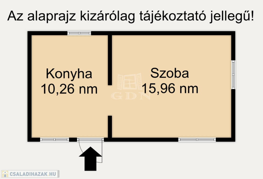 A telken lévő 60 nm-nyi ingatlan nem árképző, állapotuk felújítandó, építés esetén bontandó!